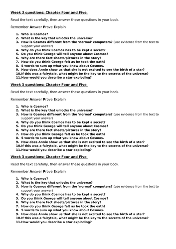 Guided Reading Questions For George S Secret Key To The Universe Lucy Stephen Hawking Teaching Resources